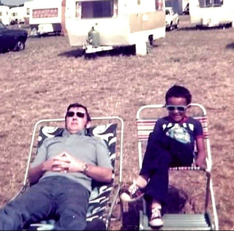 David Yeates at home with his dad Stan Yeates, Wigan, 1974